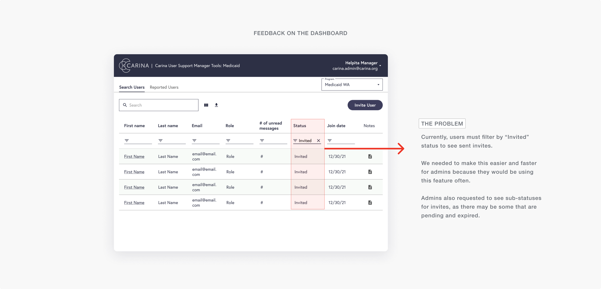 Because user support and management often audit the list of invited users, we needed to increase the list’s visibility to encourage frequent auditing and consider a variety of sub statuses.