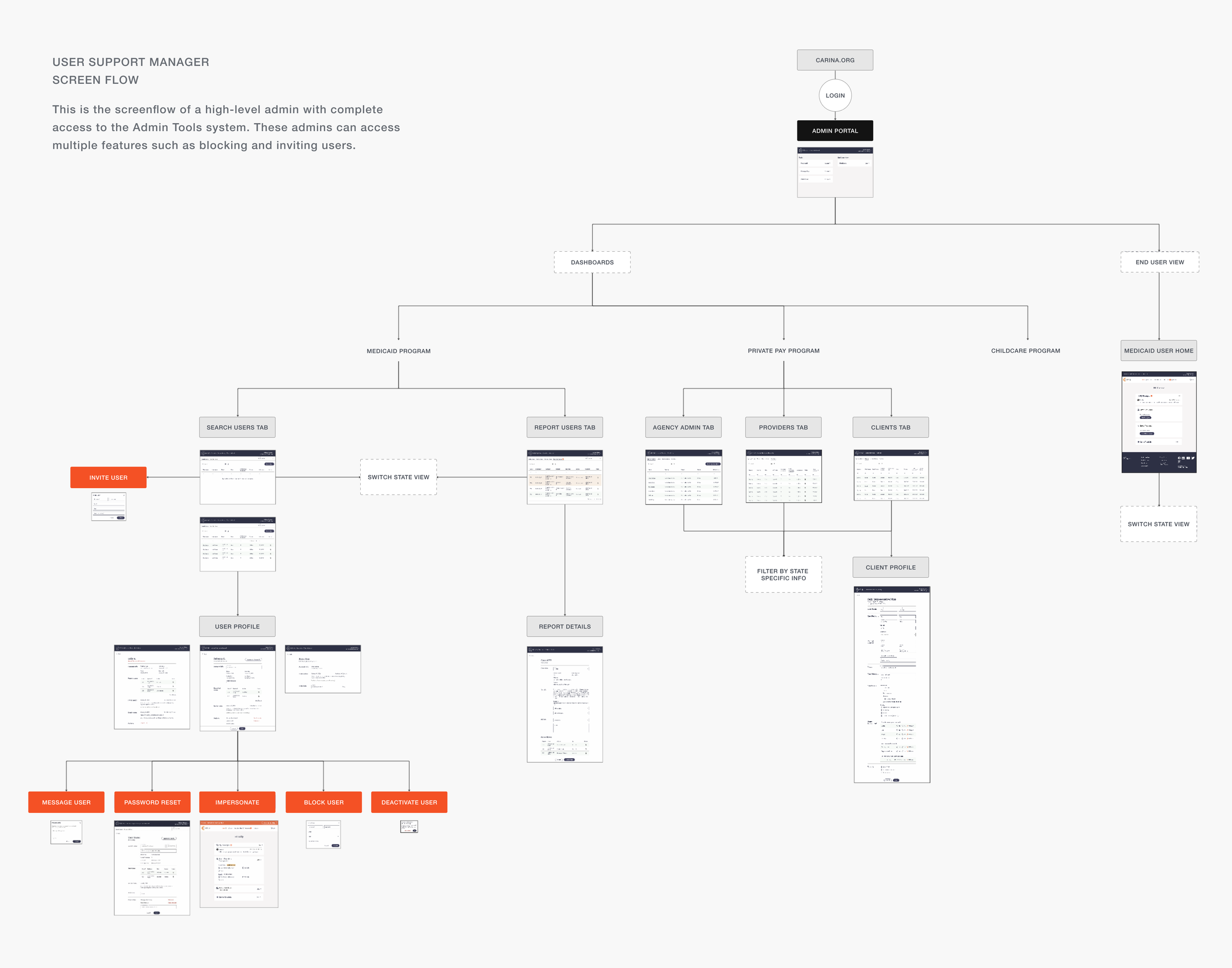 Carina offers three types of programs: Medicaid, Private Pay, and Child Care. This meant there were specific Administrative Dashboards for each. However, this entire experience was extremely disjointed.